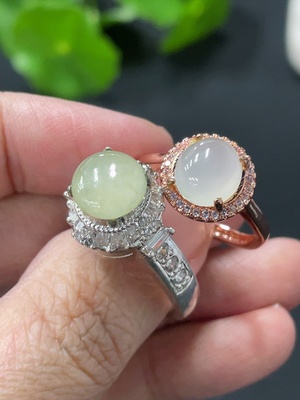 F19162986 Jadeite Cabochon Inlaid Ring Non-Gold Setting Adjustable Size