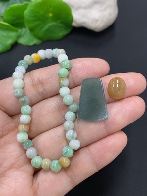 F38492158 Jadeite Plain Pendant with Beaded Chain and Cabochons Sell as a Lot