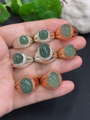 F34962032 Jadeite Cabochon Inlaid Ring Sell as a Lot Adjustable Size Non-Gold Setting