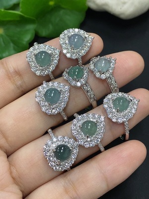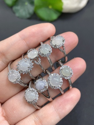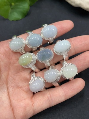 F23620276 Jadeite Cabochon Inlaid Ring Non-Gold Setting Adjustable Size