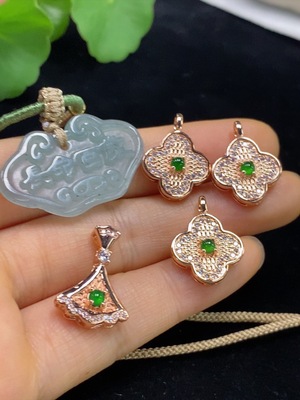 F32729862 Jadeite cabochon inlaid pendant non-gold setting