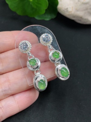 F37424419 Jadeite cabochon inlaid earrings non-gold inlaid
