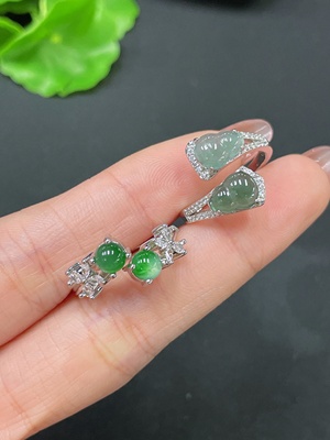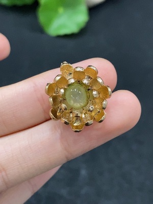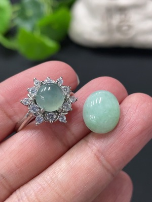 F35180760 Jadeite Cabochon Inlay Ring Non-Gold Inlay Adjustable