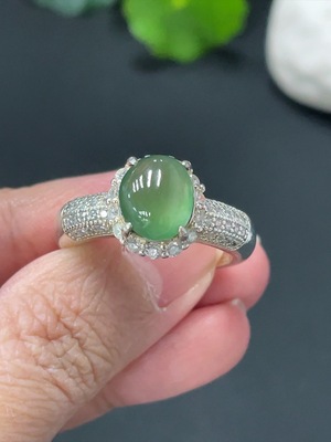 F37376472 Jadeite Cabochon Inlaid Ring Non-Gold Total Weight Approx. 24.81g