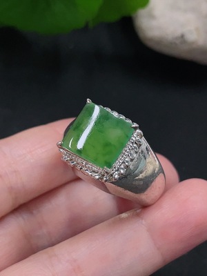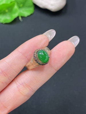 F36277748 Jadeite cabochon inlay ring, non-gold setting, adjustable