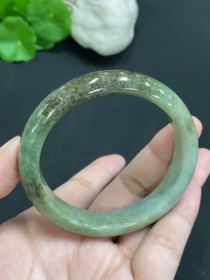 F38513599 Jadeite Round Bangle Total Weight Approx. 47.69g Containing Other Mineral Components Size 54.9