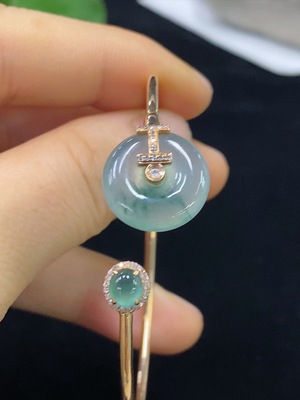 F33911379 Jadeite inlaid bracelet AU74% with diamonds (1 small non-diamond) total weight about 5.85g