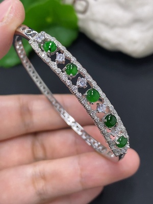 F37468530 Jadeite cabochon inlaid bracelet, non-gold inlaid, total weight approximately 7.9g