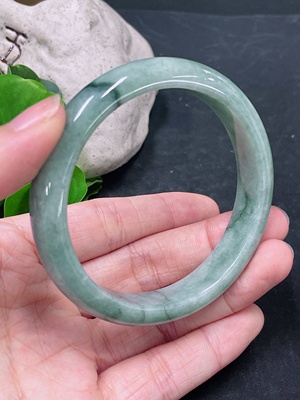 F38513599 Jadeite Round Bangle Total Weight Approx. 47.69g Containing Other Mineral Components Size 54.9