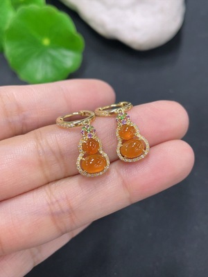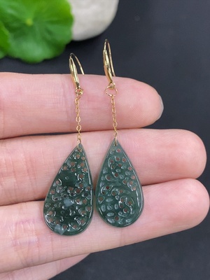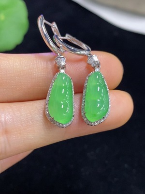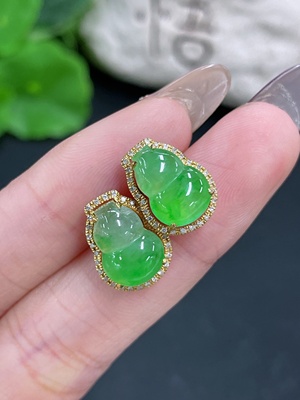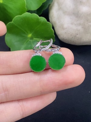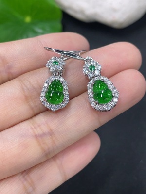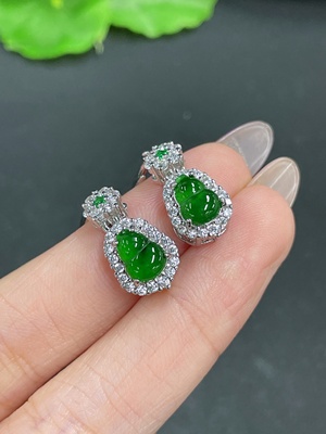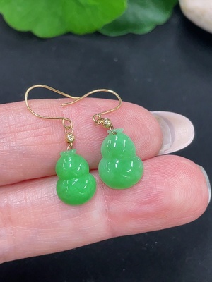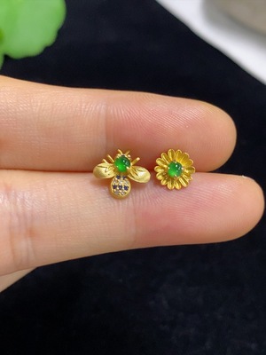 F39664521 Jadeite inlaid earrings (ear hook 18K gold, the rest non-gold)