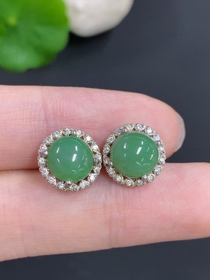 F39611391 Jadeite earrings with 18K gold mounting, total weight approx. 3.7g (set with diamonds)