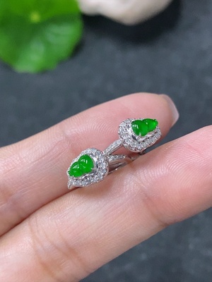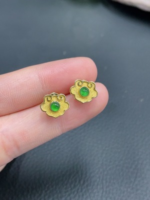 F36221977 Jadeite inlaid earrings a pair, total weight about 4.3g (non-gold inlaid)