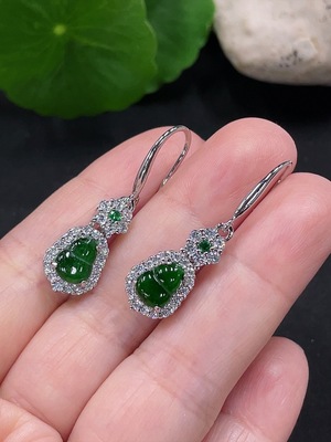 F34998667 Jadeite earrings set in 18k gold with diamond accents, total product weight approximately 2.09g