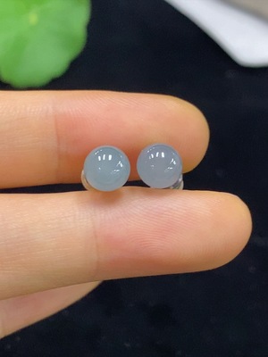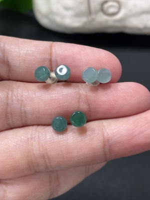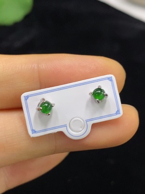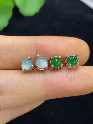 F34949052 Jadeite Cabochon Stud Earrings Pair, Non-Gold Setting, Total Weight Approx. 0.64g