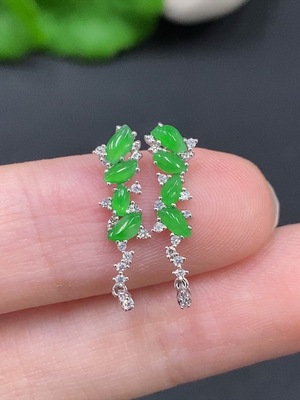 F34045330 Jadeite Inlaid Earrings Non-Gold