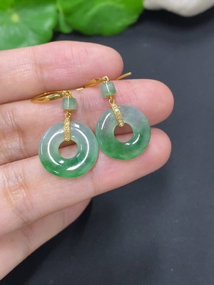 F37420233 Jadeite donut inlaid ear hook pair 18k gold inlaid non-diamond total product weight about 4.48g