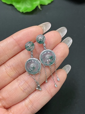 F32749415 Jadeite Inlaid Earrings Non-Gold