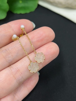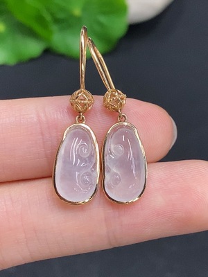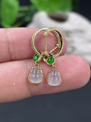 F34982519 Jadeite earrings with 18K gold setting, total weight approx. 1g (yellow part color origin undetermined)