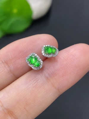 F38533885 Jadeite ear studs in 18K gold, total weight approximately 0.9g without ear backs (accented with diamonds)