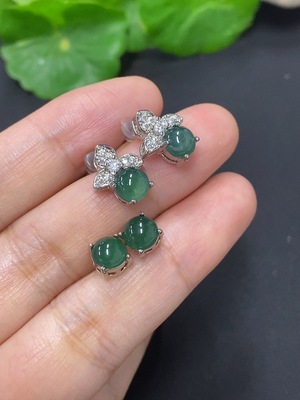 F39643587 Jadeite cabochon stud earrings pair, non-gold setting, total weight approx. 1.92g