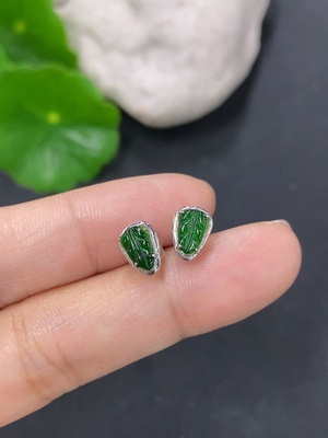 F39597501 Jadeite Leaf Inlaid Earrings 18K Gold Total Weight Approximately 0.6g Without Ear Studs