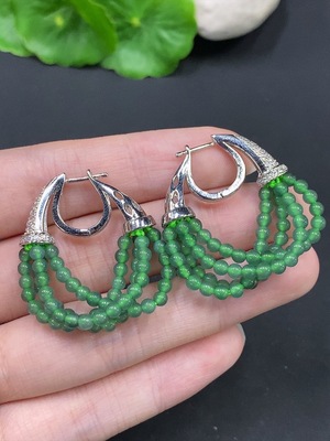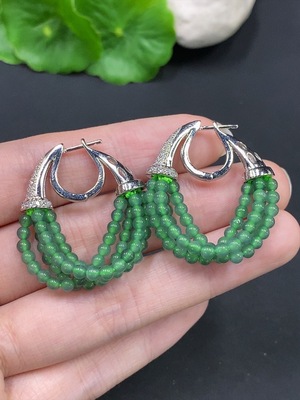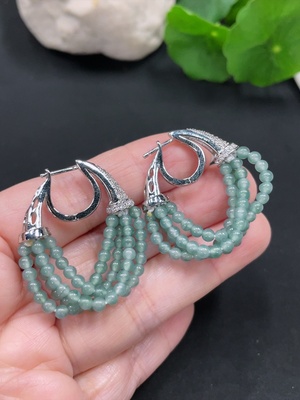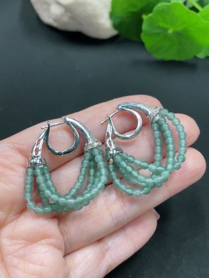 F26950479 Jadeite Single Bead Inlaid Earrings Non-Gold Inlaid Total Product Weight Approximately 10.3 Grams