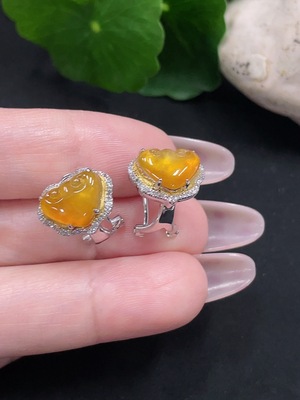 F25905267 A pair of Jadeite inlaid earrings, total weight about 10.5g (non-gold inlaid)