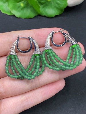 F26936201 Jadeite Single Bead Inlaid Earrings Non-Gold Inlay Total Product Weight Approximately 10.3 Grams
