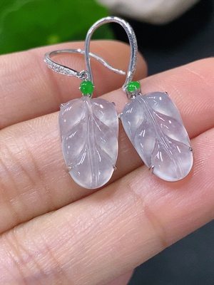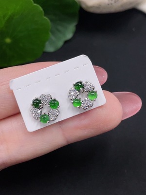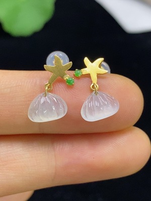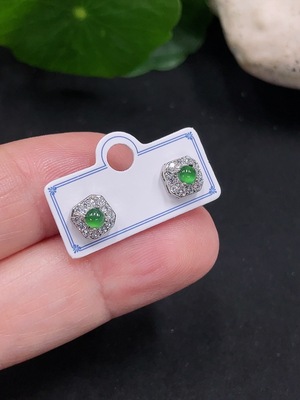 F36223128 Jadeite inlaid earrings, a pair, total weight about 0.8g (non-gold inlaid)