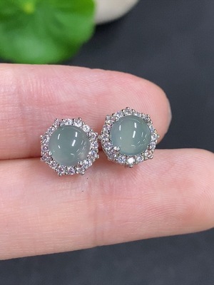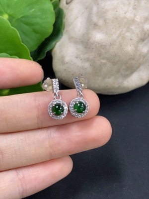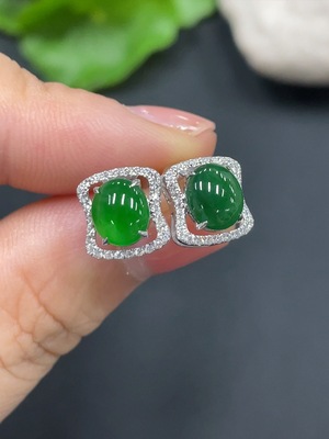 F40700297 Jadeite cabochon earrings, non-gold setting, total weight approximately 1.48g