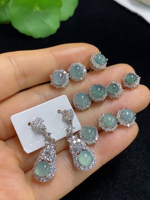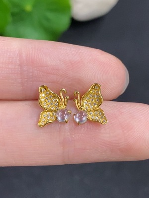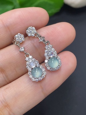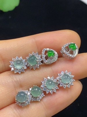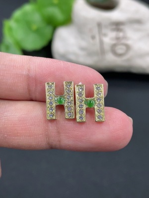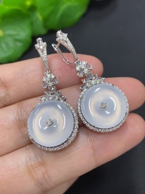 F39656779 Jadeite inlaid earrings, non-gold inlaid product total weight approximately 13.8g