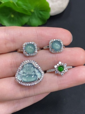 F37397803 Jadeite inlaid ring/earring/pendant non-metal adjustable