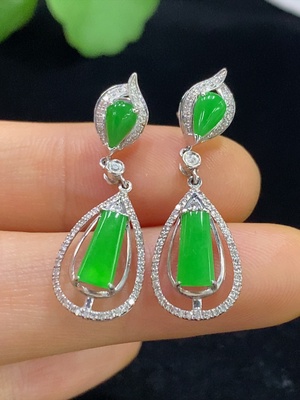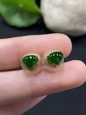 F30507793 Jadeite Earrings with 18k Gold Setting, Total Weight Approximately 2.33g