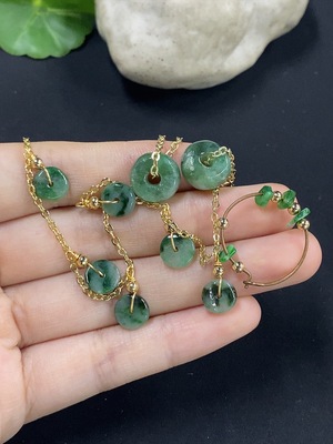 F39608665 Jadeite inlaid earrings/bracelet, non-gold inlaid, containing other mineral components