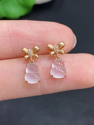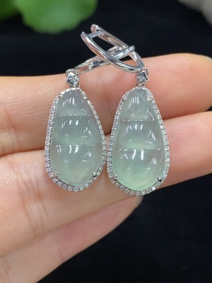 F32724157 Jadeite Gourd Inlaid Earrings 18k Gold Total Weight Approx.1.6g With Diamond Accents