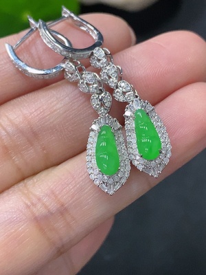 F36277657 Jadeite earrings set in 18K gold with diamond accents, total weight approximately 1.69g including ear stoppers
