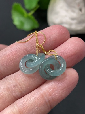 F38516237 Jadeite Donut Dangle Earrings 18K Gold Total Weight Approx. 1.1g
