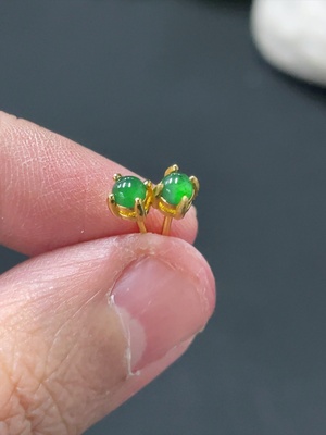 F32695850 Jadeite Inlaid Earrings 18K Gold Total Weight Approx. 0.8g Including Ear Studs