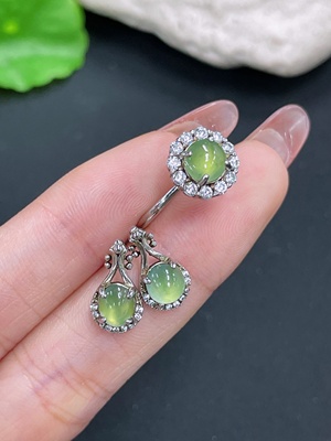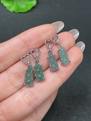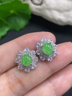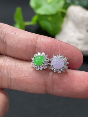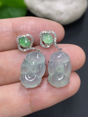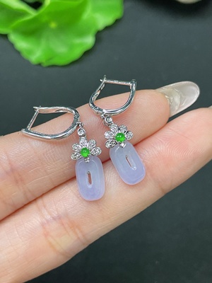 F05817415 Jadeite Inlaid Earrings Non-Gold Setting