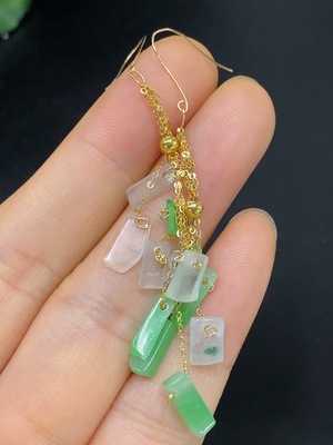 F35159163 Jadeite Earrings with Non-A Grade Beads, Non-Gold