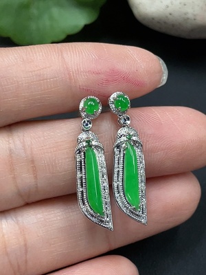 F38515193 Jadeite inlaid earrings one pair (green only)