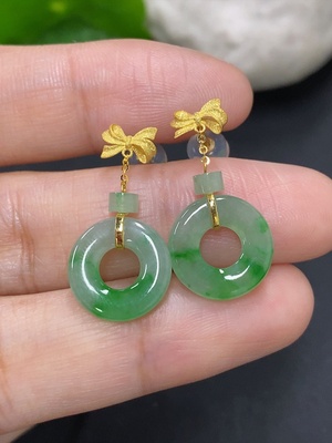 F32707288 Jadeite earrings 18k total weight approx. 0.77g (excluding ear cap weight)