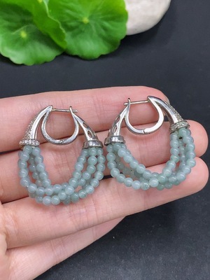 F37393969 Jadeite inlaid ear hooks pair, non-gold inlaid, total weight approx. 4.28g, contains other mineral components, with non-A grade accessory beads