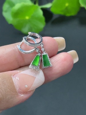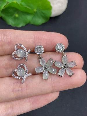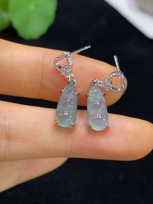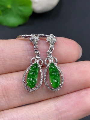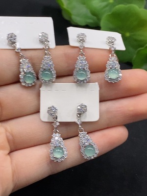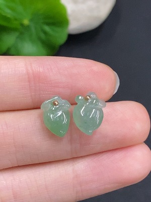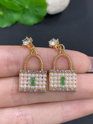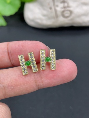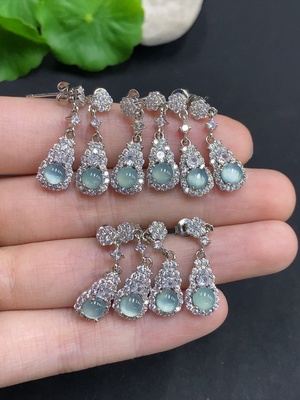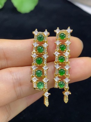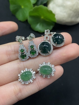 F36278543 Jadeite cabochon inlaid earrings non-gold inlaid
