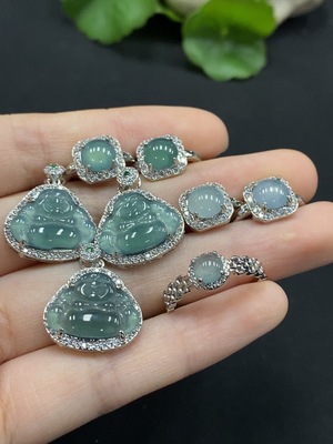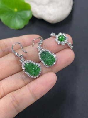 F36307692 Jadeite Buddha Pendant/ Cabochon Earrings Non-Gold Inlay