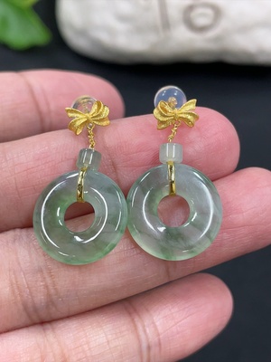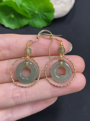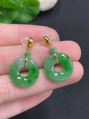 F36314997 Jadeite Donut Inlaid Earrings 18k Gold Total Weight Approximately 3.8g