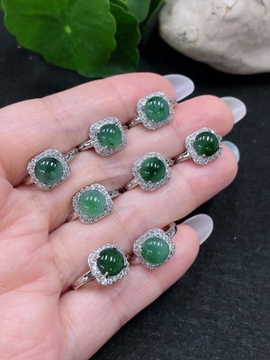 F37400142 Jadeite Cabochon Earrings/Ping An Kou Pendant/Adjustable Ring Non-Gold Inlaid