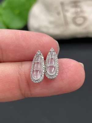 F35095319 Jadeite Blessed Bean Inlaid Earrings Non-Gold Total Weight About 2g