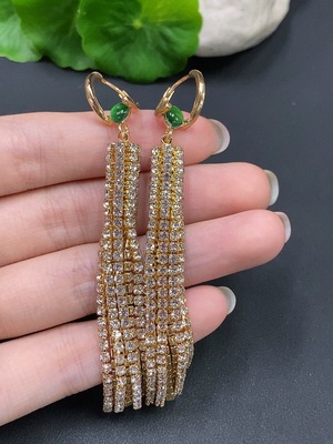 F37394525 Jadeite Earrings with 18k Gold and Diamond Accents, Total Weight Approximately 1.04g