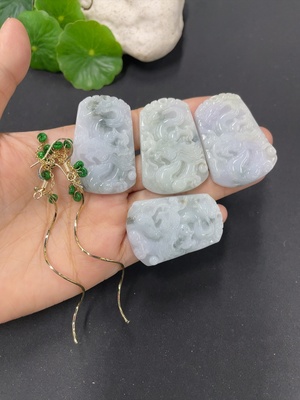 F38509927 Jadeite Pendant + Earrings Dragon Plaque Non-Gold Inlaid Contains Other Mineral Components Sell as a Lot